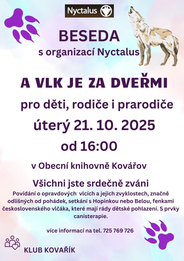 v úterý 21.10. od 16:00 v Obecní knihovně v Kovářově