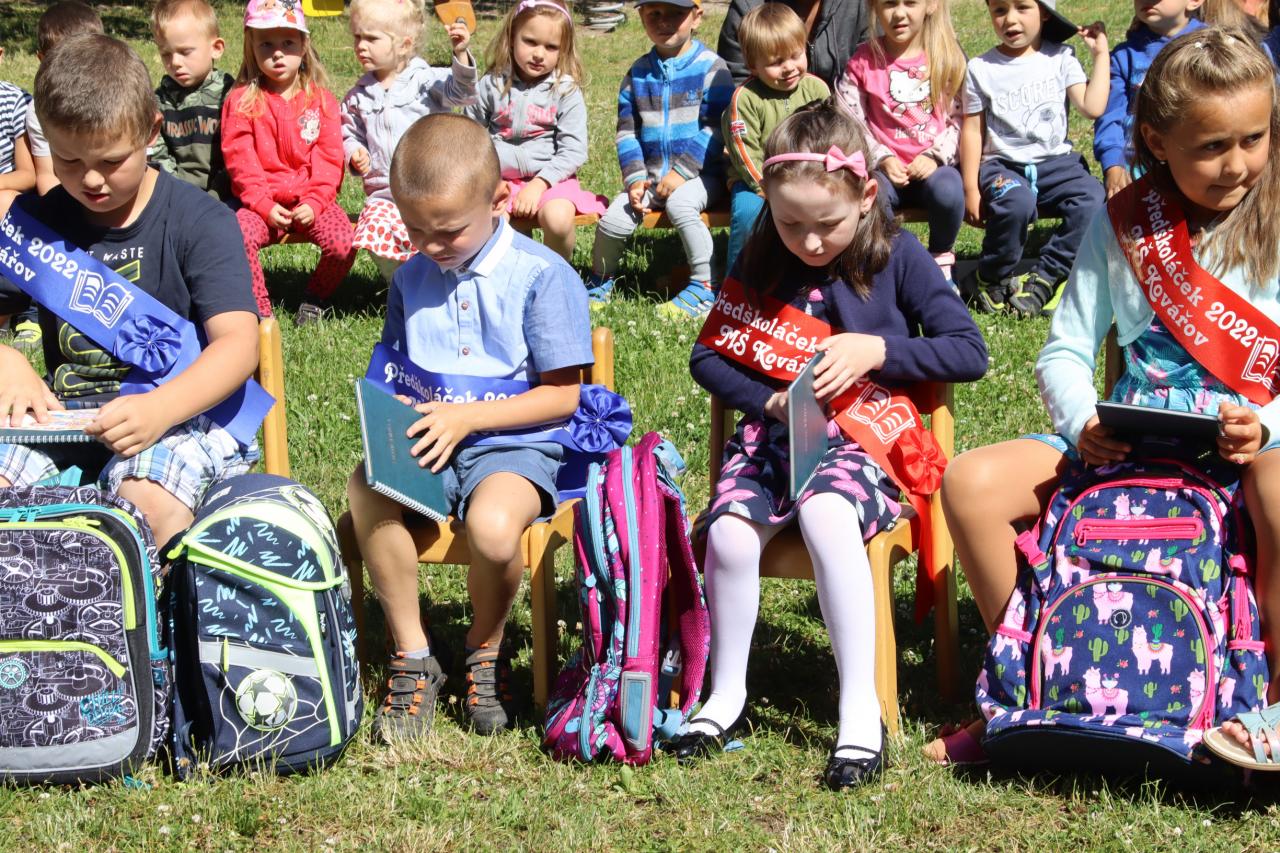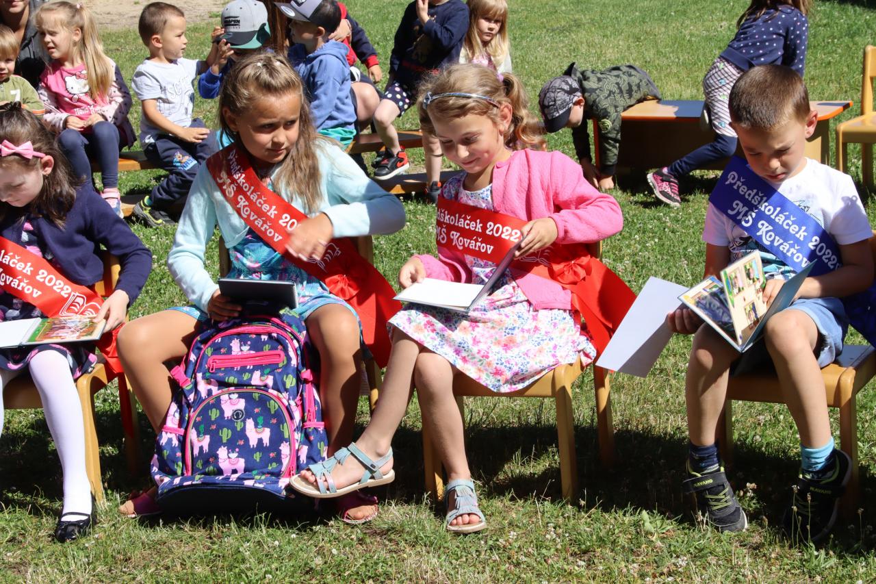 Slavnostní loučení s MŠ Kovářov se konalo v úterý 21. června. Jedenácti předškoláčkům předaly místostarostka Štěpánka Rybníčková šerpu a ředitelka MŠ Milena Fauknerová pamětní fotoknihu. Zazpívat přišel sbor ZŠ Kovářov pod vedením pí. učitelky Veroniky Pšeničné.