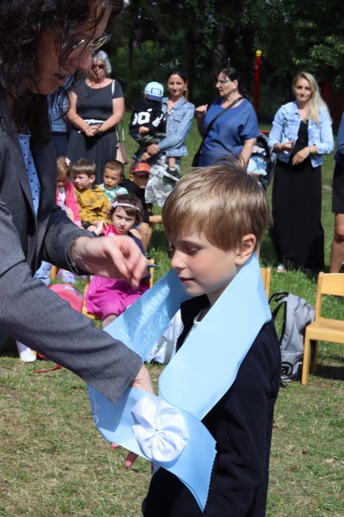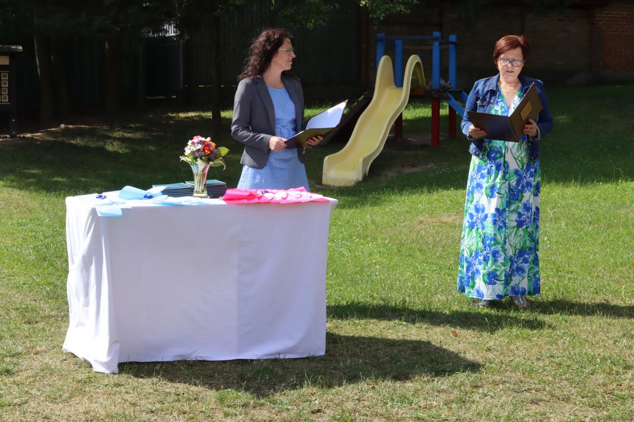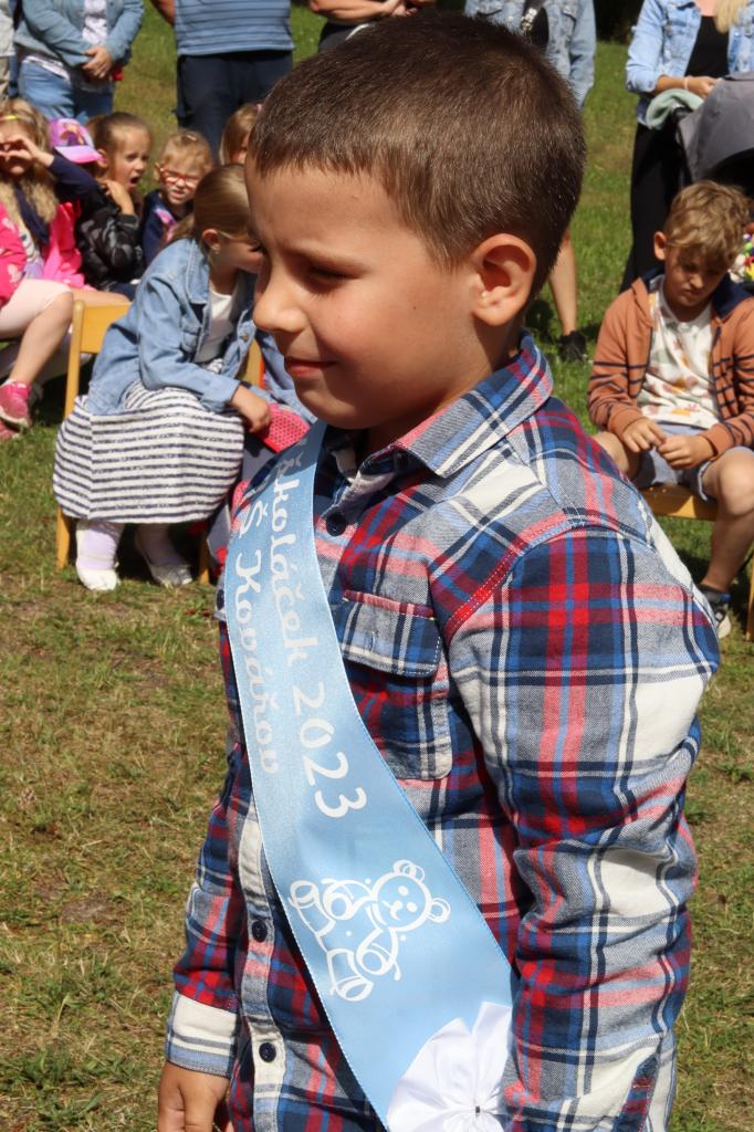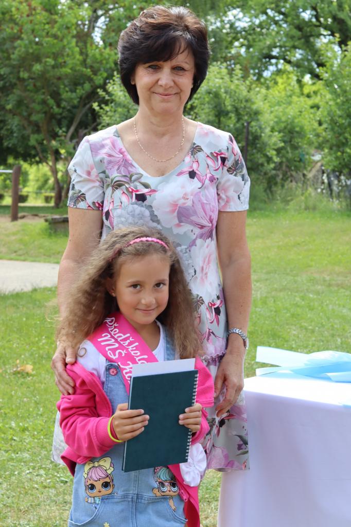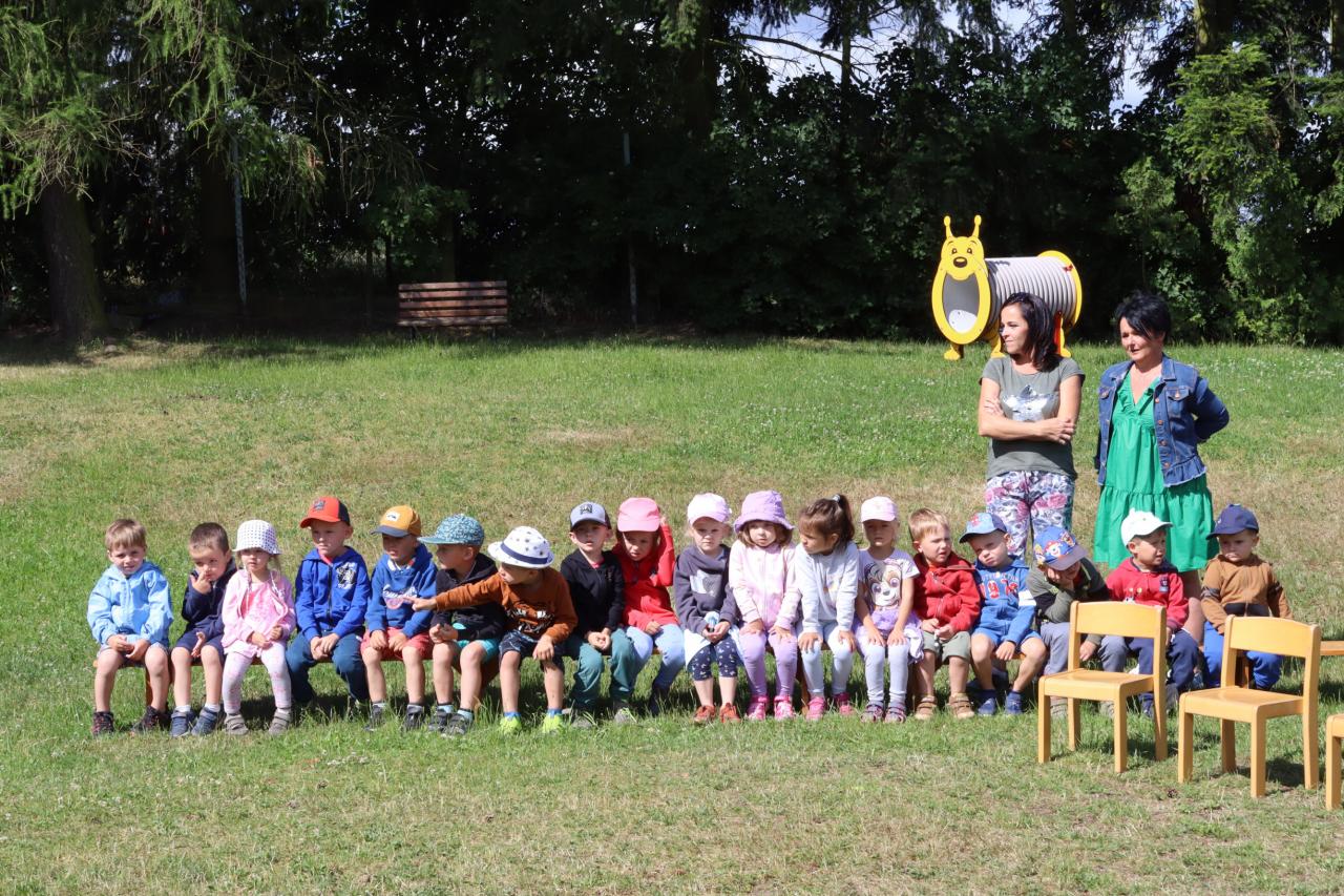Ve středu 28.6.2023 se v areálu MŠ Kovářov konalo slavnostní rozloučení se školkou. Děti obdržely od starostky obce šerpu a fotoknihu, od paní ředitelky pamětní list a na závěr akce se na památku vyfotografovaly. Foto: Petra Baštýřová