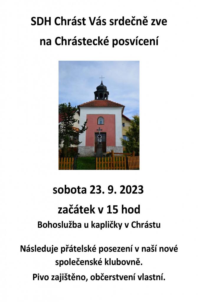 Bohoslužba u kapličky v Chrástu a následné přátelské posezení v nové společenské klubovně.