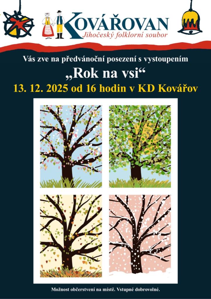 Jihočeský folklorní soubor Kovářovan Vás srdečně zve na předvánoční posezení a vystoupení "Rok na vsi".